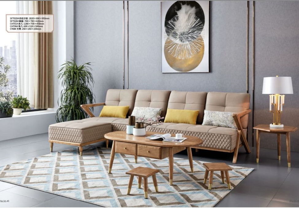 诺本丽家 布艺沙发双位+双位+踏 白蜡木