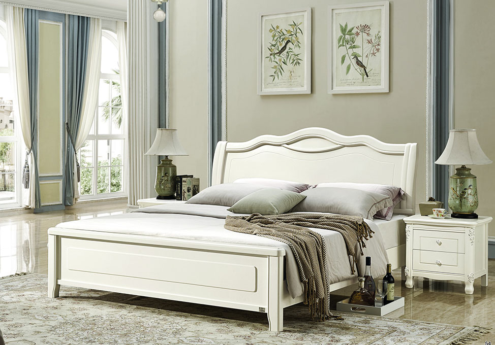 简欧 金丝白木静音床1.8米