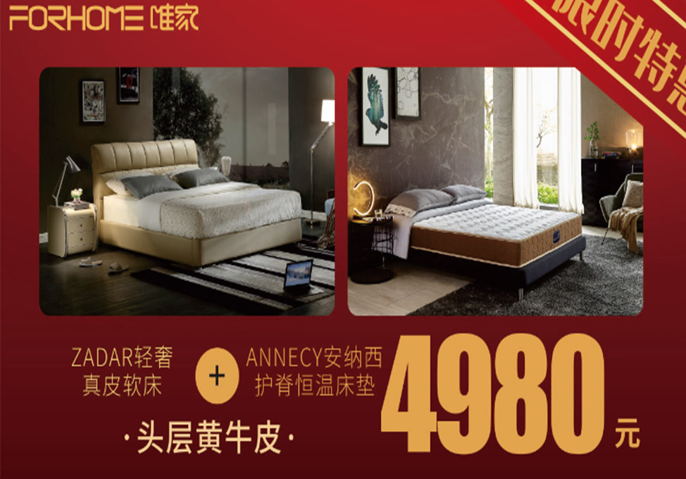 唯家 轻奢真皮软床+安纳西护脊恒温床垫