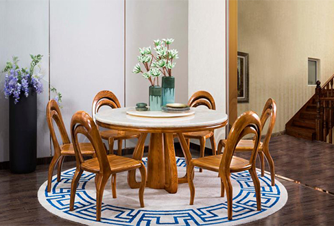汉莎 天然红龙玉实木餐台+餐椅