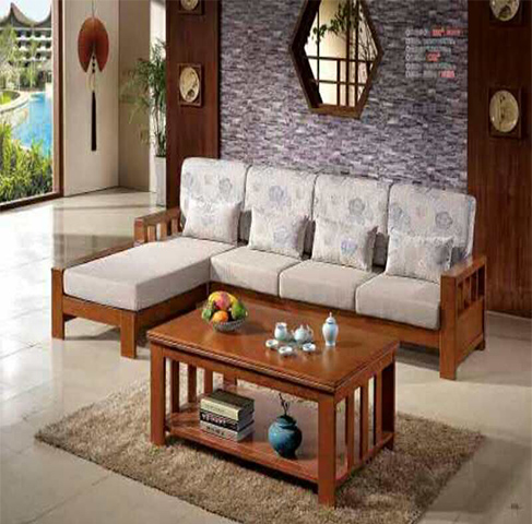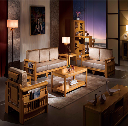 自营 实木木加布艺沙发+茶几